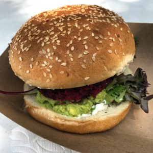 Try: Grilled Vegetable Sandwich (grilled portobello, red pepper, zucchini, eggplant and sweet onion on a brioche bun with pesto, goat cheese and balsamic vinaigrette)