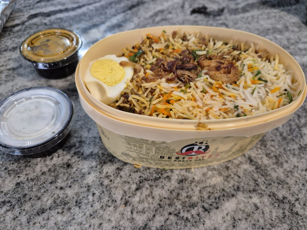Desi Bites serves the entrees in large oval, plastic containers which come with lids. This means big portions and you’ll have an easy way to take home anything you can’t eat. This format is also awesome for takeout and delivery.
