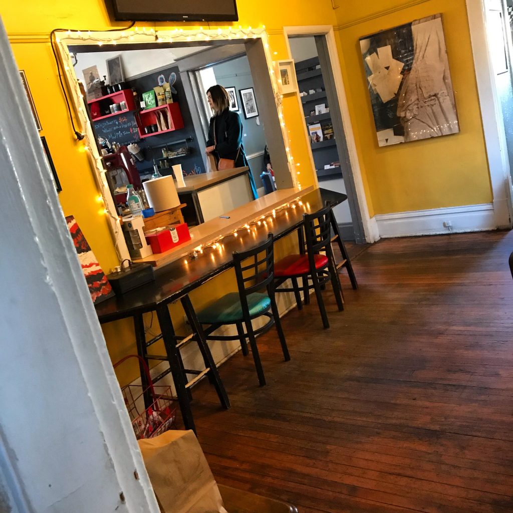 Sister Anne’s features coffee from the Broadway Roasting Co. On both of my visits, I had mocha lattes, which were excellent. Sister Anne’s serves the neighborhood where I started drinking coffee in around a decade ago. I’m a latecomer to coffee appreciation, having avoided coffee for most of my early adulthood. Ten years ago, I was involved with the infoshop that operated around the corner on Troost. One of the services we offered to visitors and community members was free coffee. As the person who made up many of the free pots each day, I started drinking coffee for the first time.