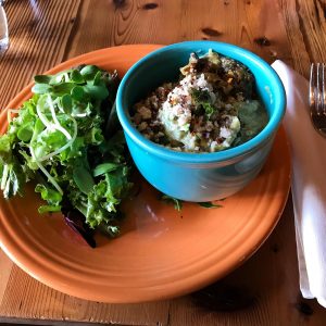 If the amazing antique store isn’t enough, the upscale dining is worth lunch with family or friends. Menu includes several vegetarian appetizers and salads with a dinner entrée: Vegetable Tamales.